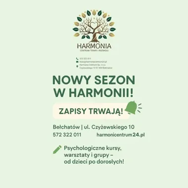 Centrum Terapii i Rozwoju HARMONIA w Bełchatowie zaprasza na dzień otwarty, podczas którego można poznać ofertę zajęć dla dzieci, młodzieży i dorosłych oraz zapisać się na wybrane cykle. To okazja, by uzyskać informacje o programach, kosztach i terminach oraz porozmawiać o możliwościach terapii indywidualnej i diagnostyki.