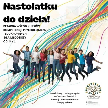 Centrum Terapii i Rozwoju Harmonia organizuje spotkanie informacyjne dla rodziców zainteresowanych kursem “Nastolatku do dzieła”. To okazja, by poznać założenia programu, dowiedzieć się o zakresie zajęć oraz warunkach uczestnictwa. Informacje o zapisach i dostępnych terminach podane są poniżej.